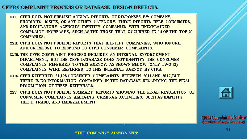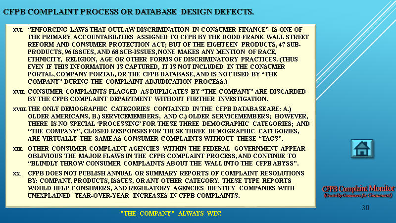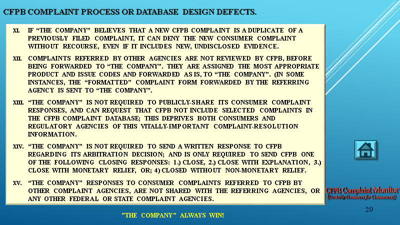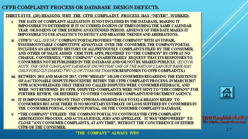 35 REASONS WHY THE CFPB COMPLAINT PROCESS DOES NOT WORK: