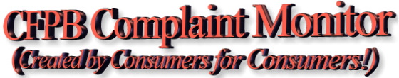 | ©This website was developed by JHBARNES & ASSOCIATES, LLC, as an information source for American Consumers. The primary source of the public-interest information contained in this: "Created by Consumers for Consumer'' website, is public domain information contained in the CFPB Consumer Complaint Database located at www.consumerfinance.gov/data-research/consumer-complaints. The privacy and confidentiality of the Consumer Complaint Information on this site was one of the overriding-tenants of the site developers, and no information contained on this site should be modified or altered in any way without written consent of the website owners. Please direct all questions and comments to cfpbcomplaintmonitor.org. |