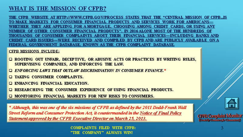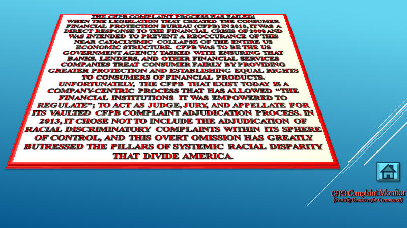 AND EXECUTIONER" OF COMPLAINTS RECEIVED VIA THE CFPB COMPLAINT