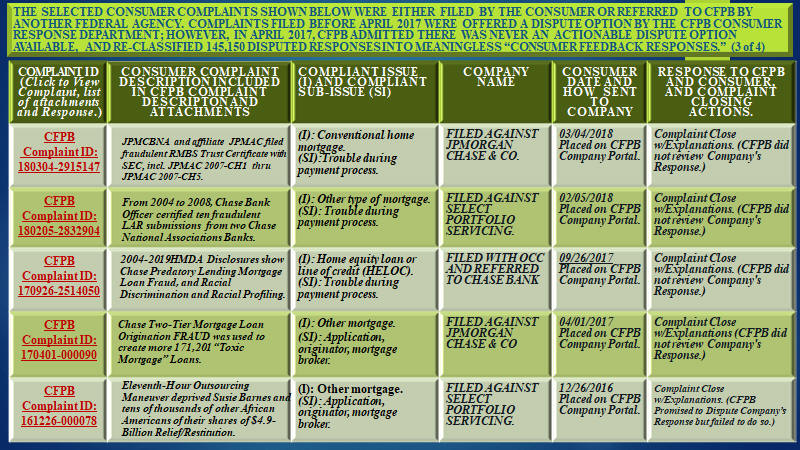 COMPLAINTS FILED BY CONSUMERS; AND THAT CFPB, RUBBER-STAMP'S "theIR"