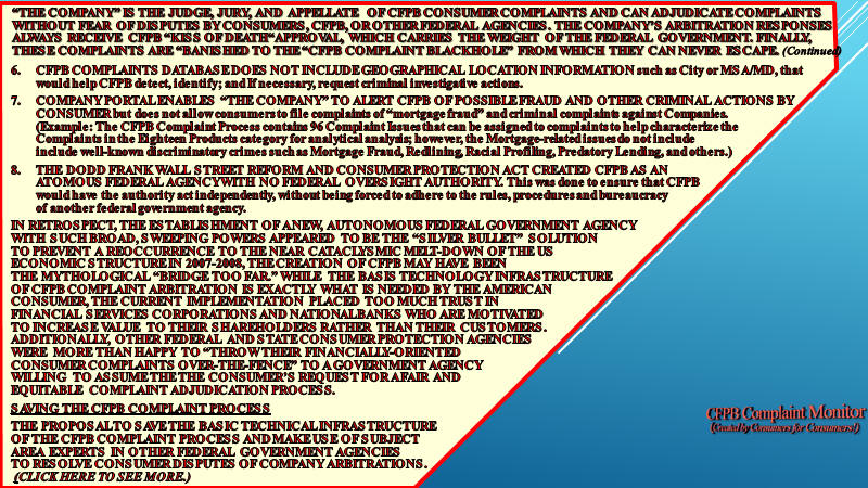 "THE COMPANY" CONTROLS THE CFPB COMPLAINT ARBITRATION PROCESS, AND